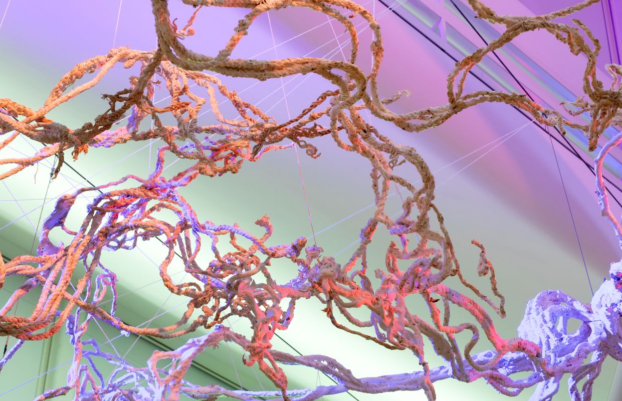 The exhibition inspires us to imagine change and see hope as an active transformative force. At its centre is a vast, multi-sensory installation: a living sculpture of mycelium and AI. Surrounding it are a research lab and new works by Brown and King, exploring the entangled relationships between artificial and fungal intelligence. Together, these elements weave climate research with low-carbon AI prototyping, inviting visitors to consider futures grounded in care, imagination, and collective action.