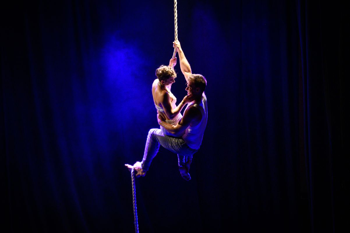 The relationships between ensemble members on stage mimic the everyday relationships we have as human beings. The acrobatic ensemble is the vehicle through which ideas of risk and trust are explored, creating an intimate experience around the dangers and joys implicit in engaging with others.